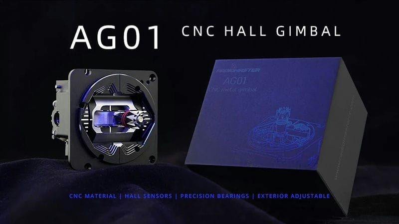 Джойстики AG01 выполнены из алюминия на ЧПУ станке и протестированы многими профессиональными пилотами. Оснащены бесконтактными датчиками Холла и четырьмя шарикоподшипниками для максимально плавного и точного управления. Регулировка хода и натяжения стиков осуществляется снаружи.