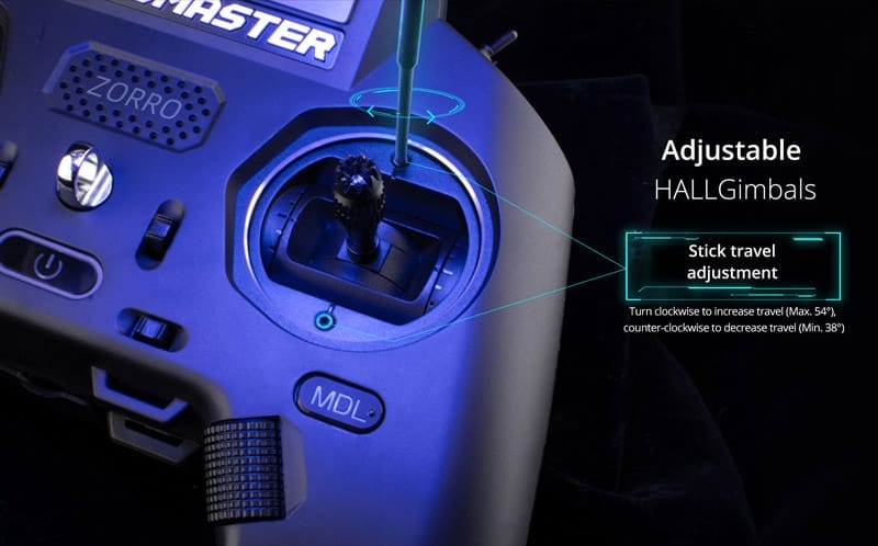 RadioMaster Zorro — эргономичный пульт дистанционного управления с большим ЖК-экраном, регулируемыми джойстиками на датчиках Холла, отсеком для внешнего ВЧ-модуля нано-размера, поддержкой прошивок с открытым исходным кодом OpenTX и EdgeTX и множеством других полезных функций.