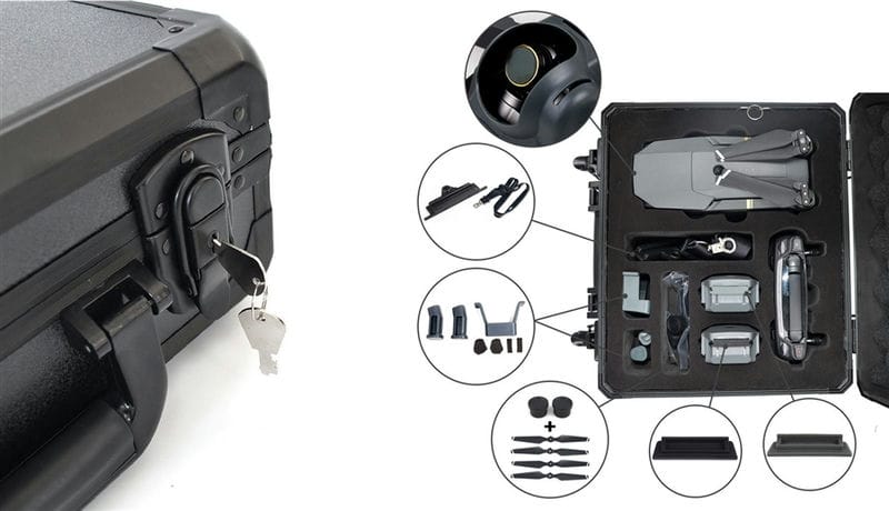 Сплав алюминия/ABS-пластик/EVA.Кейс для DJI Mavic из высококачественного ударопрочного пластика с усилениями из алюминия. Надежные замки, удобные отделения для дрона, пульта управления, двух батарей, адаптера питания и других аксессуаров помогут организовать безопасное хранение и транспортировку вашего оборудования. Уверенная фиксация оборудования за счет внутренних перегородок из пеноматериала EVA.