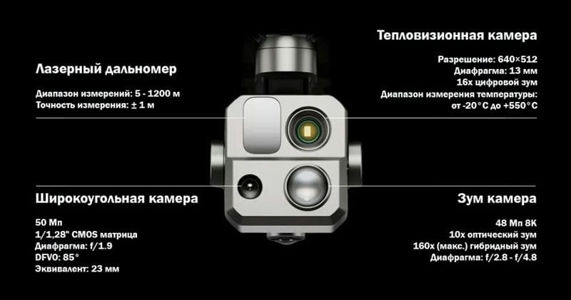 Квадрокоптер EVO Max 4T оснащён широкоугольной, тепловизионной, зум-камерой и лазерным дальномером. Слаженная работа всех этих устройств, снабжает вас всей необходимой информацией, для успешного выполнения миссий.