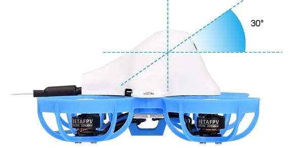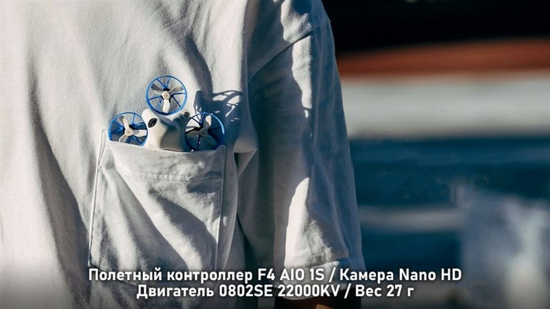 - На дроне установлена самая легкая камера Betafpv Nano HD: сверхчеткость с разрешением 1080P при 60 кадрах в секунду, сверхлегкость – вес 6,8 г, полный набор функций с OSD, аудио и записью.