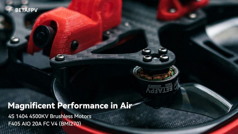 Бесколлекторные моторы 1404 4500KV обеспечивают большую мощность и низкий уровень шума. Прочные 3-лопастные пропеллеры Gemfan D63 рассчитаны на перевёрнутую установку и гарантируют пилотам плавный и стабильный полет.