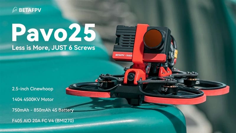 В квадрокоптере Pavo25 используется инновационная рама толкающего типа (двигателями вниз), которая создает большую подъёмную силу для всего дрона, увеличивая его тягу и длительность полёта. Дрон изготовлен методом литья под высоким давлением из высококачественного материала PA12 и углеродного волокна толщиной 2,5 мм, обеспечивая прочность и долговечность всей конструкции, а система смягчения ударов для камер, обеспечивает стабильное и чёткое видео.