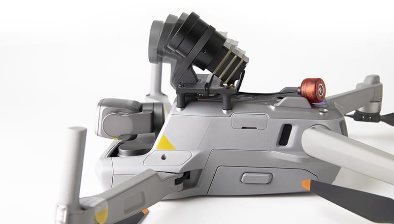42 гКомплект квадрокоптера DJI Air 2S с тепловизором MicroThermo MiniCore на фиксированном креплении. Угол наклона тепловизионного модуля настраивается, перед полётом можно подобрать подходящий и зафиксировать винтом.