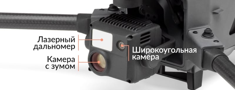 Matrice M30 оборудован широкоугольной камерой, камерой с зумом и лазерным дальномером, что предоставляет широкие возможности по получению необходимых данных.