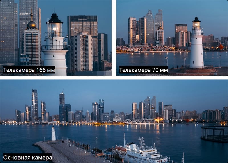 Три камеры с разными фокусными расстояниями покрывают все возможные сценарии съёмки. Между ними легко переключаться всего одним касанием экрана.