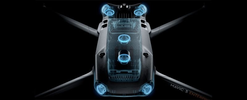 Кроме того, модуль камер DJI Mavic 3T включает в себя широкоугольную камеру 48 Мп, и камеру 12 Мп с гибридным зумом до 56×. Такое увеличение позволяет рассмотреть мельчайшие детали со значительного расстояния.