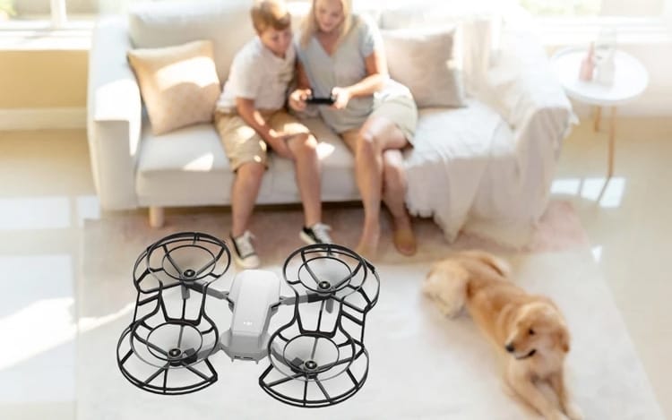 В комплекте идёт защита пропеллеров, повышающая безопасность полёта. А продвинутые датчики DJI Mini SE позволяют ему хорошо удерживать точку висения.
