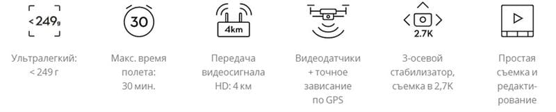 - Камера 2,7К стабилизированная 3-осевым подвесом.