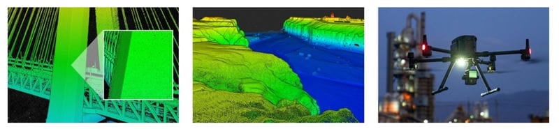 В Zenmuse L1 встроены модуль лидара Livox, высокоточный IMU-датчик и камера с 1-дюймовой CMOS матрицей. И всё это стабилизирует 3-осевой подвес. При использовании с Matrice 300 RTK и DJI Terra, L1 формирует полноценное решение, способное выдавать 3D данные в реальном времени, эффективно считывая все детали сложных конструкций и предоставляя высокоточные модели.