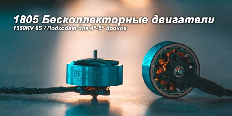 - Двигатель 1805 1550KV идеально подходит для 4-5-дюймовых дронов. Рекомендуется для TWIG ET5 5'' и X-Knight 4'' FPV.