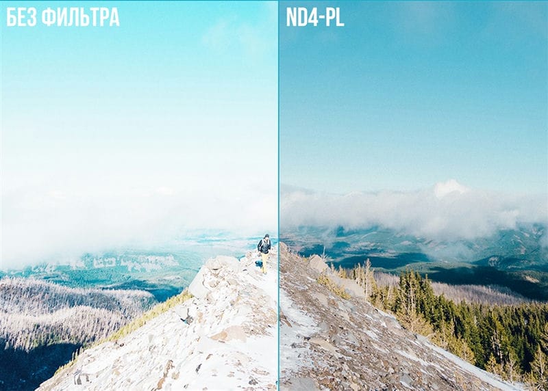 - ND4-PL эффективно подавляет появление бликов от отражающих поверхностей при фотографировании, видеосъемке на открытом воздухе. Для настройки желаемого поляризационного эффекта пользователь просто должен вращать светофильтр.