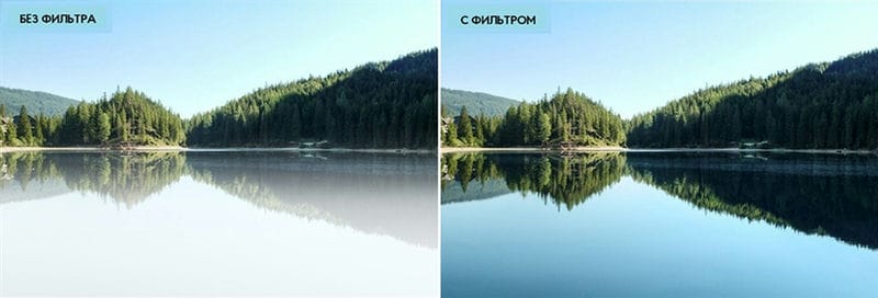 Поляризация светофильтра эффективно подавляет блики и отражения от естественных объектов при съёмке на открытом воздухе.