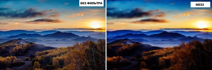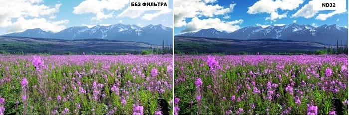 - ND32 пропускает 5 ступеней силы света, позволяя тем самым расширить время экспозиции.