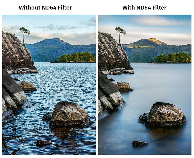 ND64 (1,563% пропускаемого света): уменьшает количество света до такой степени, что добавляет естественный эффект размытия движущимся объектам.