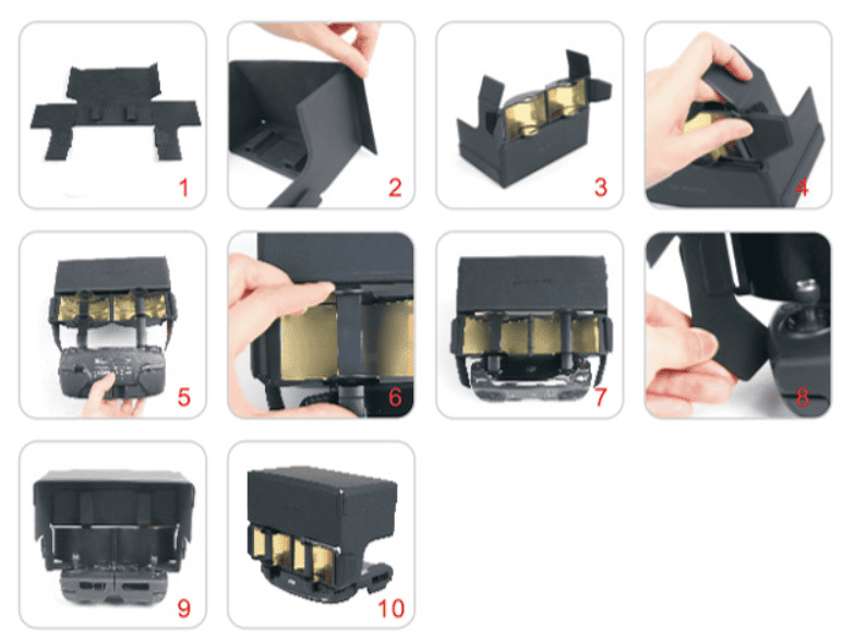 Солнцезащитный козырёк с параболическими отражателями для антенн пультов для пультов серии DJI Mavic и DJI Spark. Шторка прекрасно защищает от бликов и солнечных лучей, а параболический отражатель усиливает сигнал, добавляя от 30 до 70 процентов к дальности полёта дрона(зависит от внешних условий). Шторка легко устанавливается, без дополнительных инструментов, может использоваться отдельно от усилителей сигнала. Обращаем внимание, что перед использованием рекомендуется снять защитную плёнку с отражающей поверхности усилителей. В сложенном состоянии шторка занимает мало места, что позволит взять её с собой в кармане куртки.