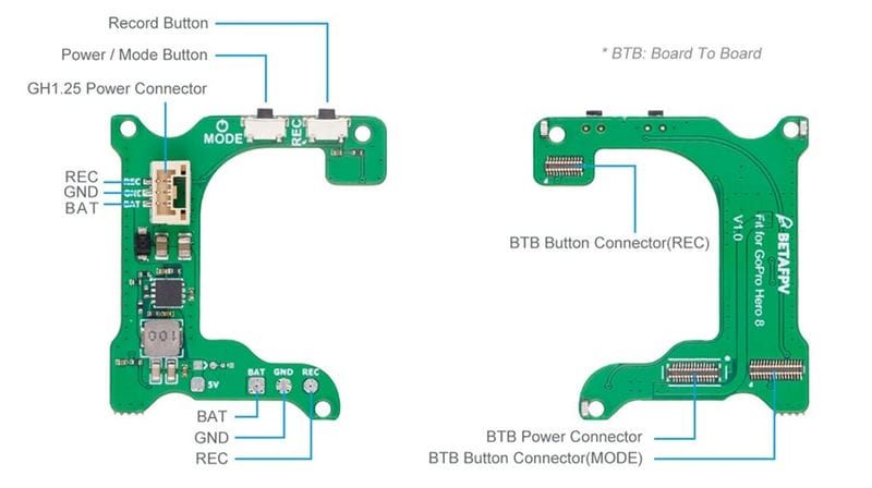 Обратите внимание: плата BEC для HERO8 не подходит для Case V2, но есть файл STL для Naked GoPro HERO8 Case.