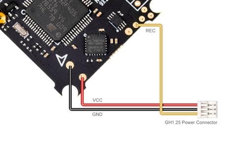 Если вы у вас полётный контроллер F4 FC V2.0, схема подключения показана ниже. Желтый кабель (FC B12 pin pad) предназначен только для удаленной записи.