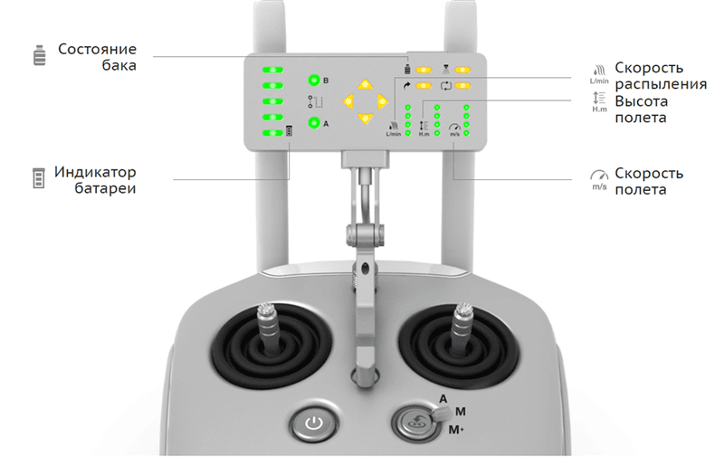 Мощный привод позволяет поднимать до 10 кг жидкости. В час Agras MG-1 может обрабатывать до 4 га площади. Высокоточная система интеллектуального управления и несколько режимов полета гарантируют равномерно интенсивное распыление. Система распыления сама настраивает процесс с учетом скорости полета, что позволяет контролировать объем потребляемых жидкостей, времени и ресурсов. Agras MG-1 оснащен радаром непрерывного излучения счастотной модуляцией и передовым контроллером полета. Это дает возможность сканироватьместность в режиме реального времени и соблюдать оптимальную высоту полетас точностью до сантиметра.