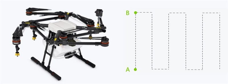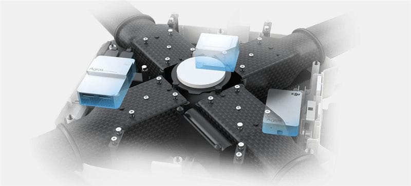 Agras MG-1S оснащен функцией интеллектуальной регистрации точек маршрута. С помощью приложения DJI вы можете заранее проектировать маршруты и задавать необходимые условия работы. Если во время полета в баке закончится жидкость или полет будет прерван по каким-либо другим причина, то октокоптер автоматически регистрирует точку маршрута и после возвращается в нужную точку для продолжения работы. Три высокоточных радара миллиметрового диапазона расположены на передней, задней и нижней плоскости бака для жидкостей. Передний и задний датчик определяют тип рельефа и автоматически регулируют и поддерживают высоту. Для оперативного управления скоростью и объемом распыления имеется новый датчик давления и датчик расходомера.