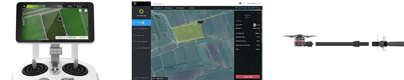 Специально зарядная станция позволяет подключить до 6 батарей, а каждое интеллектуальное балансировочное зарядное устройство позволяет подключать 2 зарядных станции. Таким образом, одновременно можно подключить для последовательной зарядки 12 батарей. С помощью специального мобильного приложения портативный анализатор распыления сможет показать изображения капель на водостойкой лабораторной бумаге, предоставив оператору возможность узнать о результатах своей работы. Высокоточная система RTK предназначена для обеспечения точности распыления. Она также поддерживает точное картографирование полей и повышает надежность пилотирования.