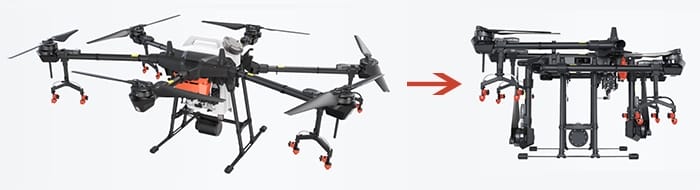 Совершенно новая модульная архитектура агрокоптера T16 упрощает сборку и убыстряет ежедневную эксплуатацию. Класс защиты IP67 обеспечивает надёжную защиту ключевых компонентов дрона. Лёгкая и прочная рама из карбоновых композитов может быть быстро сложена до 25% от своего исходного размера, что делает транспортировку значительно удобнее. Аккумулятор и бак легко заменяются.