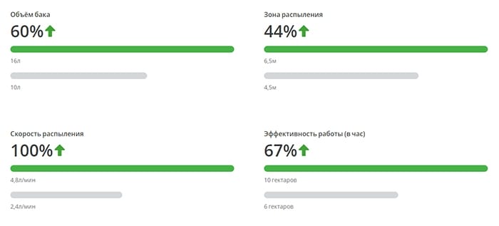 Выдающиеся полётные характеристики позволяют T16 переносить до 16 л, а зона распыления увеличилась до 6,5 м. Система распыления имеет четыре помпы и 8 разбрызгивателей с максимальной скоростью распыления в 4,8л/мин. T16 способен опрыскивать до 10 гектаров в час.