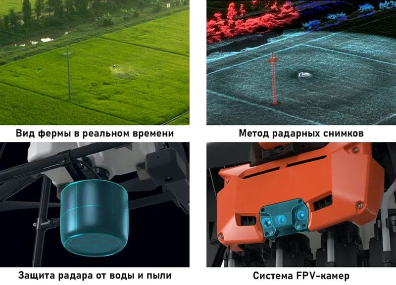 Всенаправленный цифровой радар, установленный в T20, обнаруживает опасные препятствия по всем горизонтальным направлениям. Радар обеспечивает высокий уровень безопасности полетов благодаря автоматическому обходу препятствий на рельефной местности. Радар совместно с высокой устойчивостью дрона к пыли и воде, помогает беспилотнику в любое время суток легко и быстро адаптироваться к большинству условий. FPV-камера и 2 прожектора помимо того, что позволяют получать качественное изображение при плохой видимости или ночью, также повышают безопасность полетов.