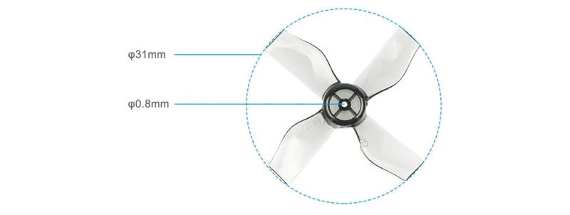 0,8 ммЭти 31-миллиметровые пропеллеры адаптированы для 65-миллиметровых коллекторных дронов с валом двигателя 0,8 мм.