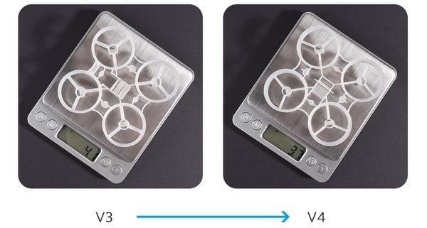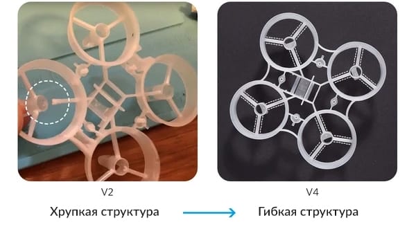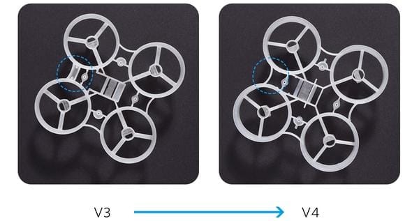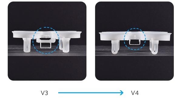- Расположение держателя аккумулятора. Теперь он находится несколько выше, что позволит пилотам выполнять идеальные манёвры в Acro-режиме.