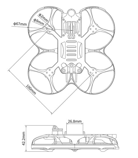 100 ммРама Beta95X имеет новую инновационную pusher-конфигурацию. Более прочная, лаконичная и лёгкая в установке, чем рама V2. Предусмотрены ниши из углеволокна под полётный контроллер и антенну.
