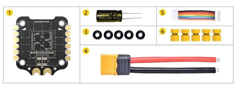 13,8 гSpeedyBee 50A BLHeli_S 4-в-1 ESC — регулятор оборотов с диодом TVS, который защищает плату от скачков напряжения. Работает на микроконтроллере BB21 и имеет большие контактные площадки для удобной пайки.