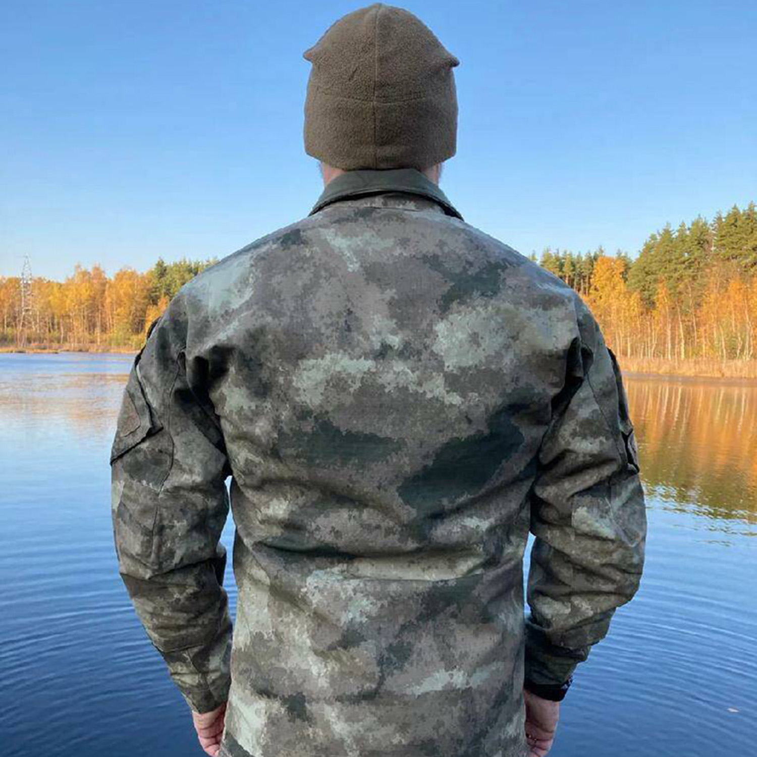 Боевая куртка "Рысь" от компании 5.45 DESIGN предназначена для использования в температурном режиме от 0°C (с учётом дополнительных слоёв одежды) до +25°C. Данную современную модель оценят не только специалисты, сотрудники охранных предприятий, но также туристы, спортсмены, любители тактических игр и активного образа жизни. Особенности куртки «Рысь» заключаются в простоте конструкции, надёжности, эргономичности и ремонтопригодности. Куртка изготовлена из материала нейлон/хлопок, в соотношении 50/50. Благодаря этому, изделие комфортное, обладает приятными тактильными качествами, прочное, лёгкое, хорошо пропускает воздух и быстро сохнет. Универсальная длина не доставит неудобства при динамике движений. Воротник-стойка создан для сохранения тепла. На передней части воротника оригинальная липучка Velcro идеально подходит для регулирования относительно объёма шеи. Воротник защищает от механических повреждений и неблагоприятных погодных условий. Возможно использование демпферных вставок на рукавах в районе локтей. Два нагрудных кармана с оригинальными липучками Velcro подойдут для хранения документов, гарнитуры и прочих небольших предметов. На рукавах также расположены карманы, оснащённые липучками для патчей и шевронов. Манжеты на Velcro предусмотрены для регулировки и плотного прилегания к телу пользователя. Специальные пигменты в ткани обеспечивают ИК-ремиссию, как важнейшее маскировочное свойство, которое несомненно оценят специалисты.