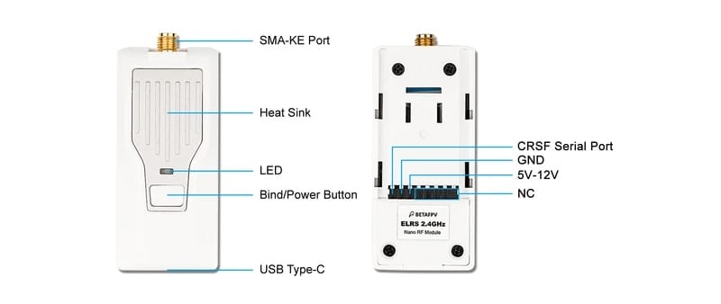 Модуль BETAFPV Nano совместим с радиоаппаратурой, которая имеет отсек для Nano модуля (также называют Lite модулем), например, Frsky Taranis X-Lite, Frsky Taranis X9D Lite, TBS Tango 2. ExpressLRS использует последовательный протокол Crossfire (также известный как протокол CRSF) для связи между пультом и модулем передатчика. Поэтому убедитесь, что ваш пульт управления поддерживает последовательный протокол CRSF.