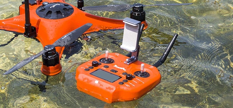 SplashDrone 4 следит за GPS позицией пульта управления, благодаря чему всегда возвращается к пилоту, даже если он уже уплыл на лодке далеко от точки взлёта.