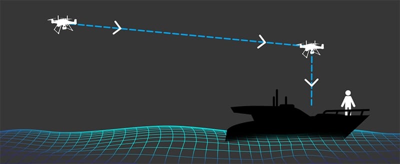 Стоит иметь в виду, что из-за особенностей распространения электро-магнитных волн дальность связи при нахождении дрона на расстоянии 0,5 м над водой составляет 2,8 км, а если дрон плавает на поверхности — 500 м.